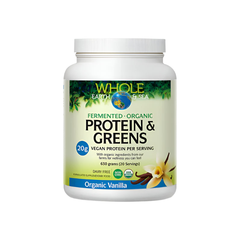 Fermented, Organic Protein & Greens is an organic vegan protein powder. The formula provides 20g of plant protein blend in every serve and includes fermented grasses, fruits, vegetables and mushrooms to support an active, healthy lifestyle.