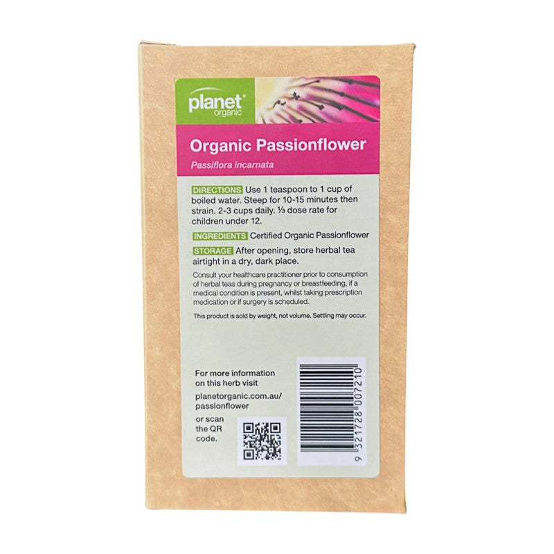 Planet Organic Passionflower Herbal Tea may assist in reducing anxiety, upset stomachs and aid in balancing mood. It has also been known to lessen the effects of menopause and be beneficial for hot flushes. Supports ageing skin and reduces inflammation.