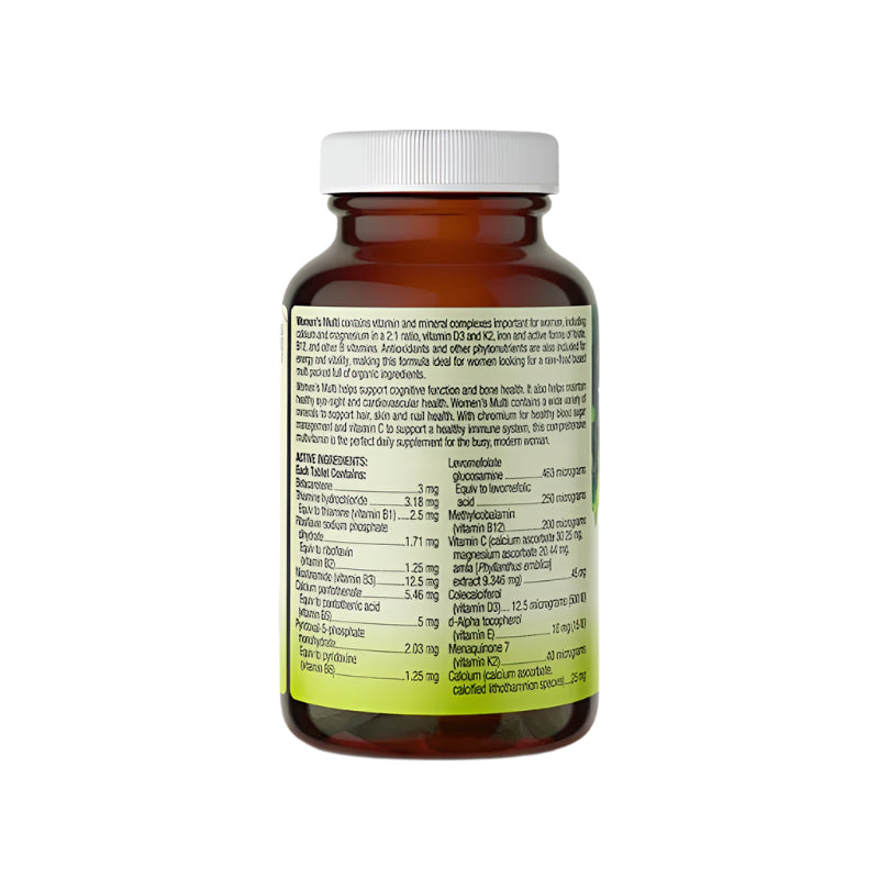 Women’s Multi contains vitamin and mineral complexes important for women, including calcium and magnesium in a 2:1 ratio, vitamin D3 and K2, iron and active forms of folate, B12 and other B vitamins.